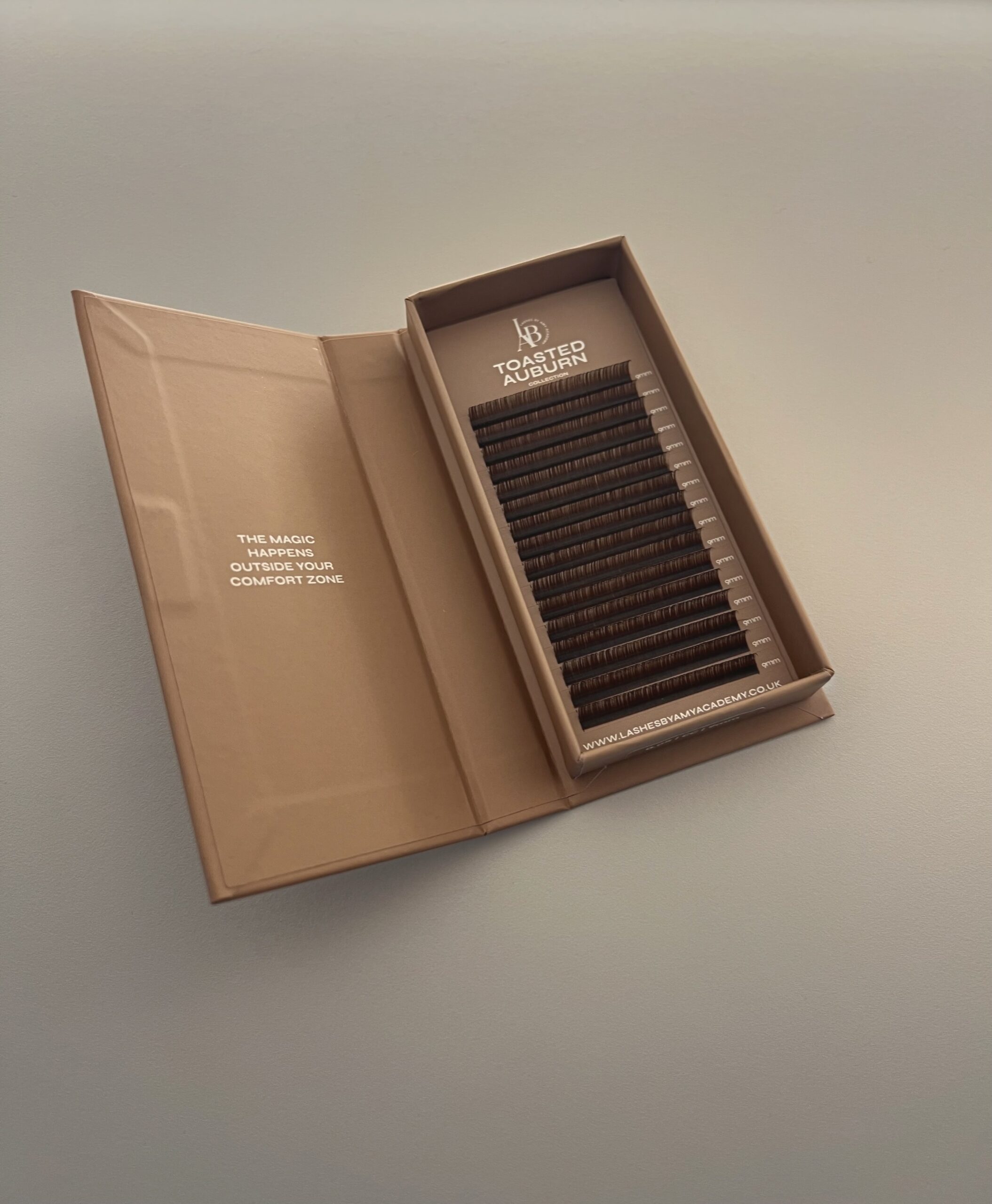 Our Toasted Auburn lash trays feature a soft, warm auburn tone designed to enhance lighter lashes and add subtle warmth to brown lash sets. This refined shade creates a natural yet elevated finish, perfect for bespoke sets.